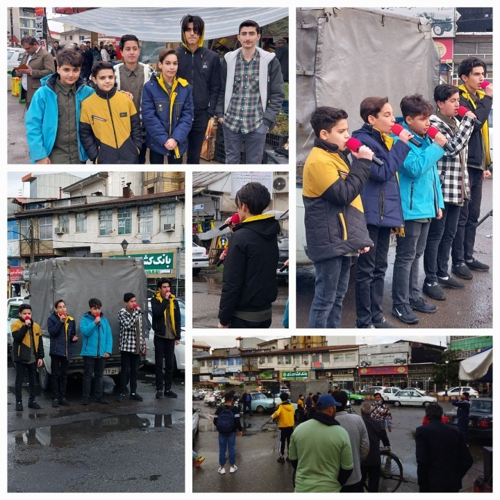 گروه سرود یاوران مهدی(عج) کانون فاطمیه با اجرای سرودهای انقلابی و حماسی در سطح شهر تولم شهر، فضای شهر را حماسی کرد.