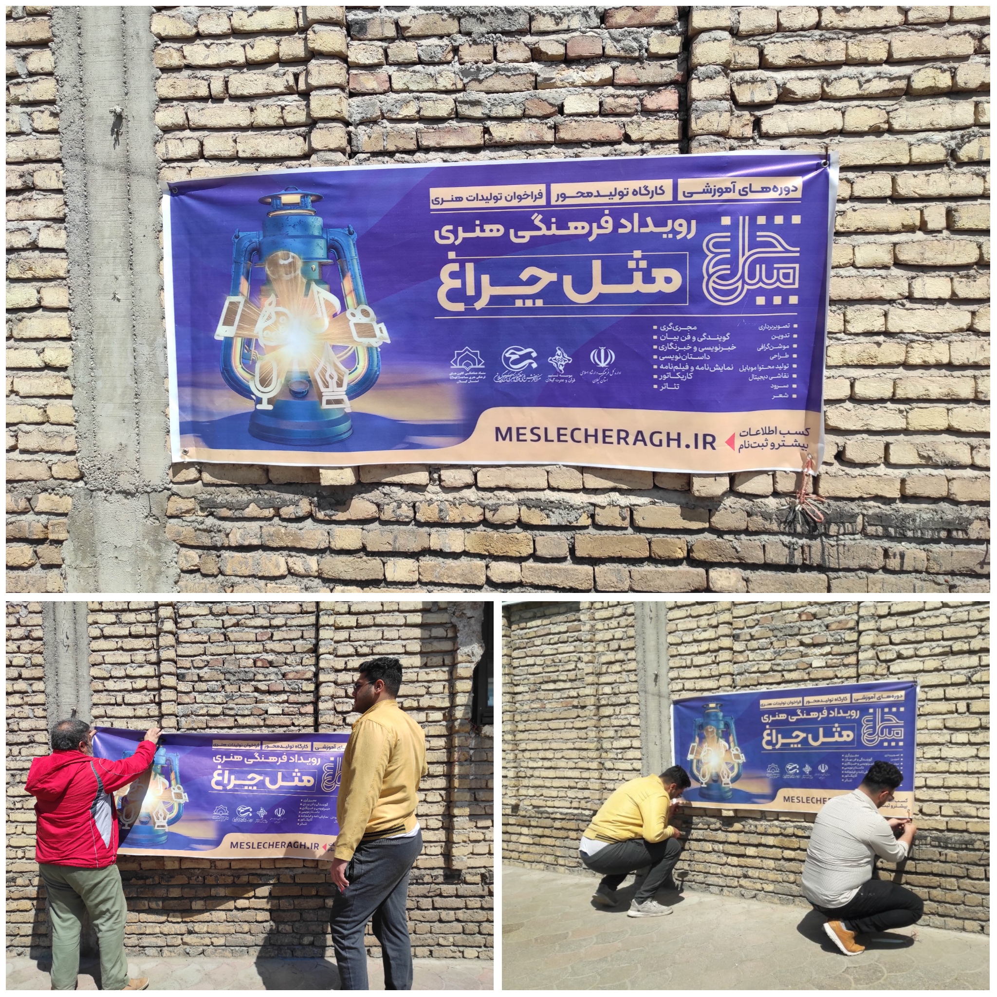 نصب بنر رویداد فرهنگی هنری "مثل چراغ" به همت کانون ولیعصر(عج) مسجد صاحب الزمان (عج)