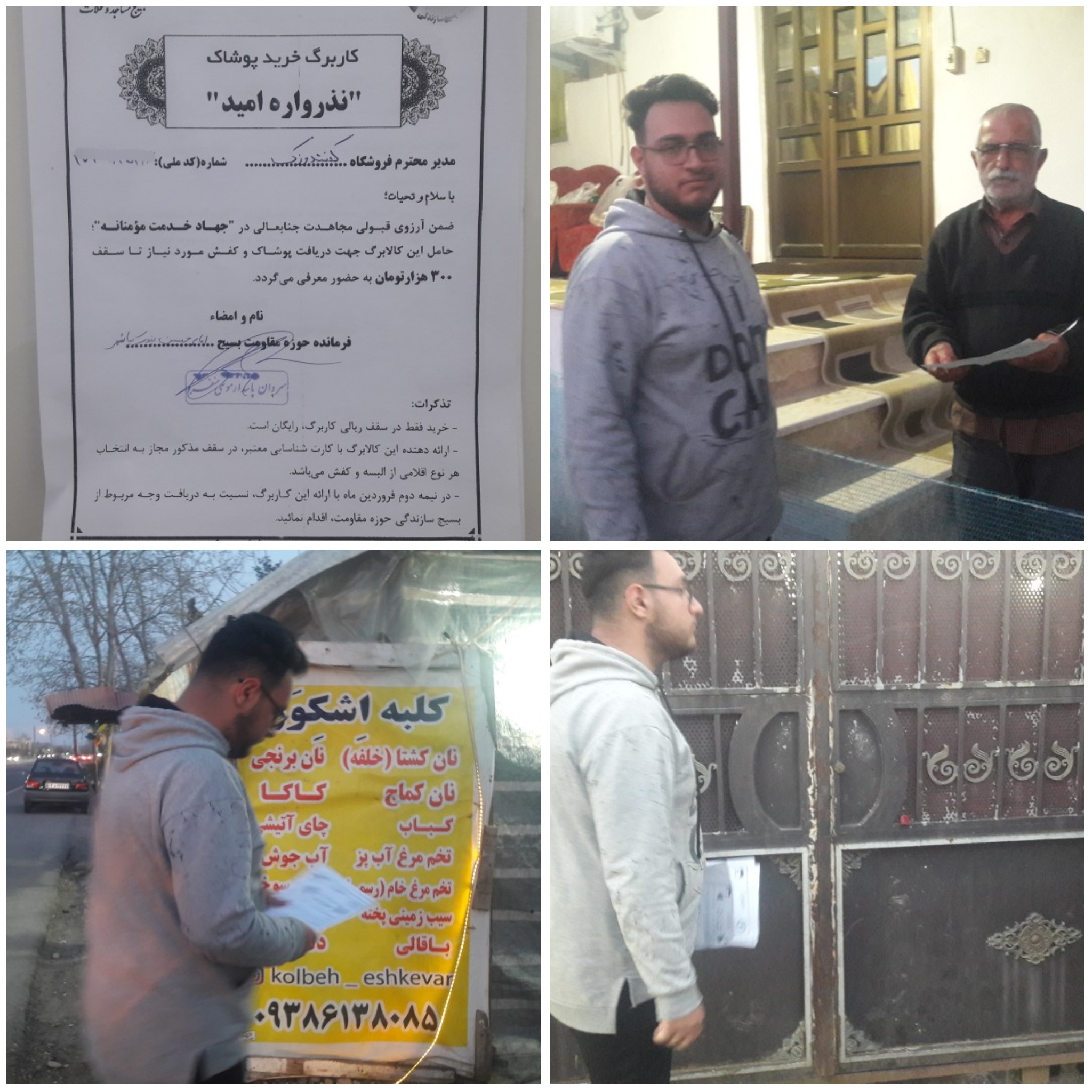 ۶ بن خرید کفش تا سقف 300هزار تومان برای افراد مستضعف ویژه جوانان و نوجوانان به همت کانون ولیعصر(عج) و با همکاری پایگاه بسیج مقاومت شهید آیت الله دستغیب روستای دهسر تهیه و توزیع شد.