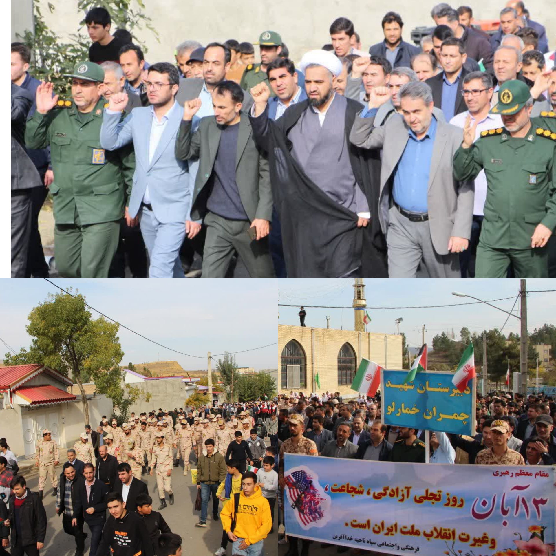 حضور مدیر مسئول و اعضای کانون فرهنگی هنری در راهپیمایی پرشور یوم الله ۱۳آبان ماه در شهرستان خداآفرین .