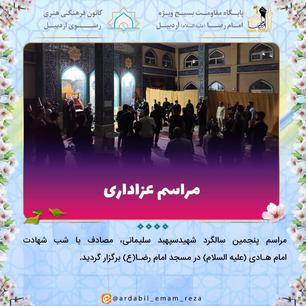 مراسم پنجمین سالگرد شهید سپهبد سلیمانی، مصادف با شب شهادت امام هـادی (علیه السلام) در مسجد امام رضـا(ع) برگزار گردید.