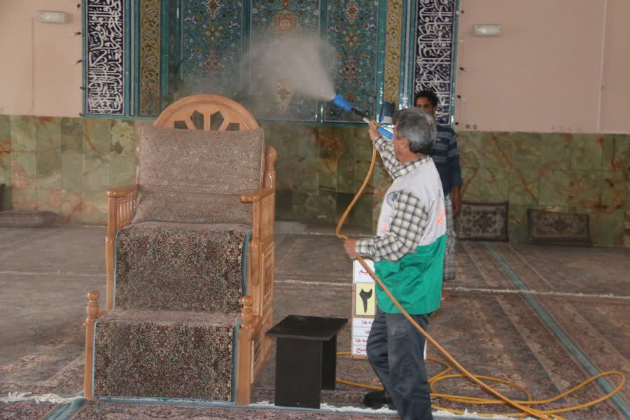 ضد عفونی مسجد توسط اعضای کانون برای اجرای مراسمات و برگزاری نماز جماعت